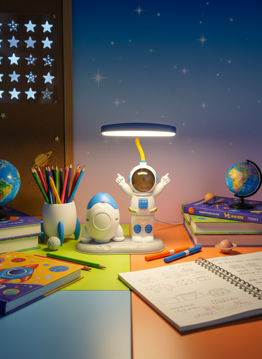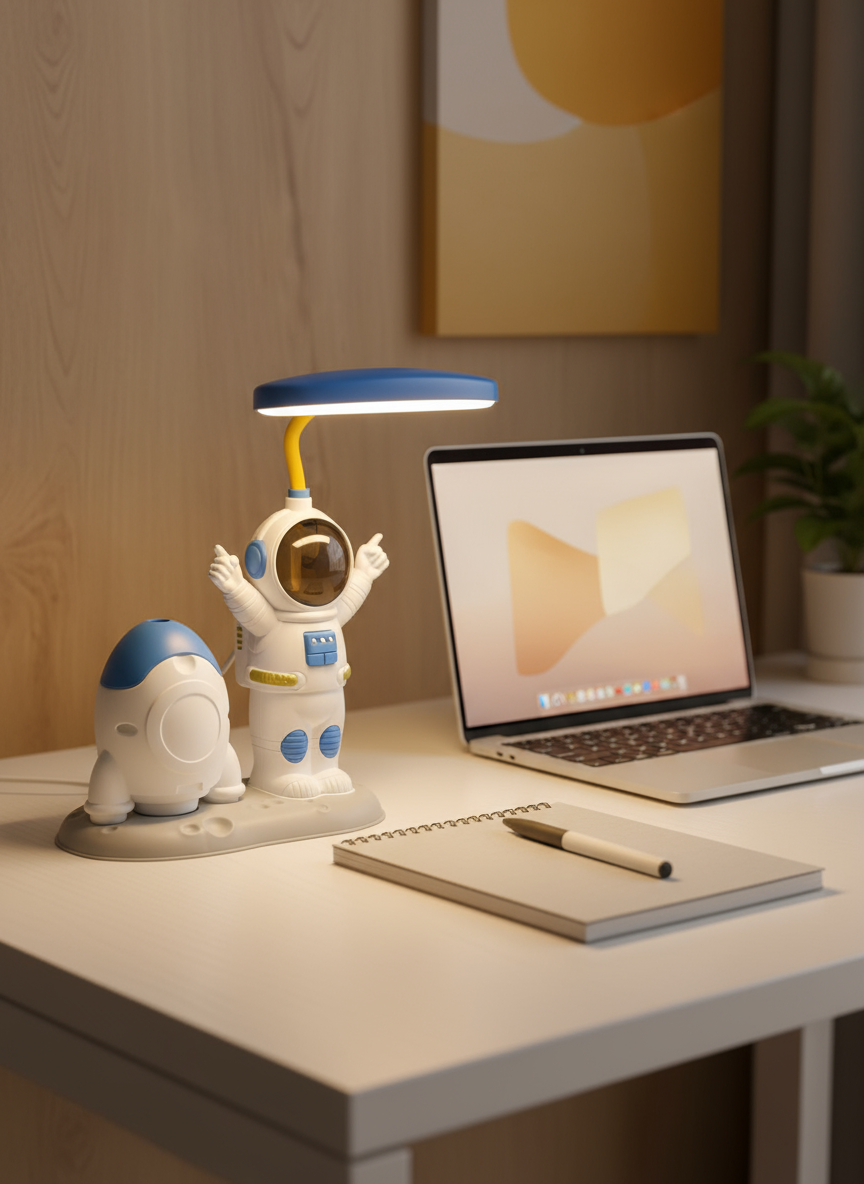 Convierte tu escritorio en una aventura espacial con la increíble Lámpara Astronauta con Sacapuntas Integrado.